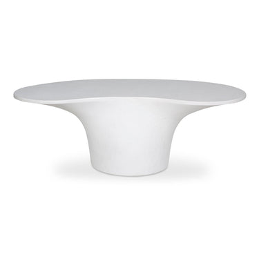 A bold blend of style and stability, the Yumi outdoor coffee table features a freeform top perfectly balanced upon a pedestal-style base for a modern yet grounded look. Crafted from glass fiber-reinforced Concrete that combines cement, glass fiber, and Styrofoam for durability and lightness, its rough texture adds a layer of tactile interest, transforming its contemporary form into a centerpiece of conversation.