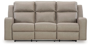 Indulge your lust for comfort and love for contemporary design with this reclining sofa. Made for easy everyday living, it’s upholstered in a heavyweight padded faux leather and accented with contrast jumbo stitching for fashion-forward flair. Sleek track arms elevate the look with a touch of modern sensibility. A drop-down table with dual cup holders and USB ports completes the experience.