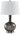 This accent lamp distinguishes itself in any setting. Its dark glass body is round and distinct, providing a mood of rustic romance.