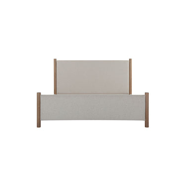 The Warren bed's classic four-post design exudes warmth and sophistication, crafted from robust rubberwood with a rich midtone brown stain. The plush, upholstered headboard, wrapped in soft polyester fabric, invites touch and creates a serene focal point, transforming the bedroom into a sanctuary of understated luxury and restful comfort.
