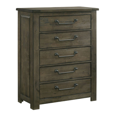 La cómoda Maverick de 5 cajones en gris aporta un estilo rústico y acogedor a tu dormitorio. Presenta detalles envejecidos y vetas de madera que le dan una sensación cálida. Fabricada con maderas macizas y manufacturadas resistentes para años de uso. Su acabado neutro es perfecto para complementar la estética de tu dormitorio. Completa el estilo con la cama con paneles Maverick.