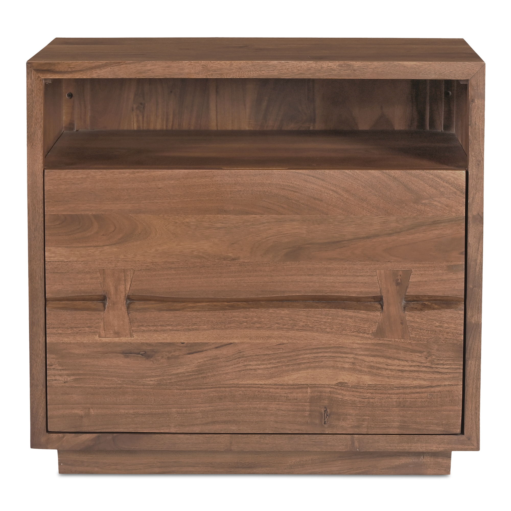 The Madagascar nightstand features solid, live-edge acacia, with a warm brown finish that highlights the natural wood grain and creates a warm, inviting look for your home.