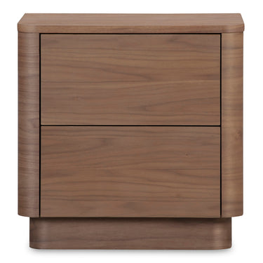 Good nights deserve good design. The Round Off Tall Nightstand pairs softly rounded corners with a warm walnut veneer, bringing a calm and grounded presence to the bedroom. Rich wood grain detail adds natural depth, while a solid rubber wood base ensures lasting stability. Two push-to-open drawers glide smoothly, offering generous space for books, glasses, or nighttime essentials. A balanced blend of form and function, it’s where natural warmth meets everyday routine.