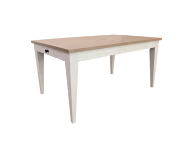 La mesa de comedor rectangular de 152 cm es una adición impresionante a cualquier hogar. Su fresco acabado Cotton pintado a mano y su tablero Weathered Natural en contraste ofrecen un encanto atemporal que sin duda impresionará. El tablero extensible admite grupos de diferentes tamaños, con capacidad para hasta 6 personas cómodamente sentadas y hasta 8 con el ala de 45 cm incluida. Los dos cajones Captain son un práctico elemento que proporciona amplio espacio de almacenamiento para artículos esenciales de comedor y entretenimiento. Con ensamblajes de cola de milano y guías con rodamientos de bolas, estos cajones son funcionales y duraderos. El moderno faldón de la mesa refleja influencias vintage, mientras que los herrajes personalizados de metal sólido en auténtico bronce bruñido añaden un toque de elegancia. Las patas cónicas crean una silueta llamativa. Fabricada con madera maciza de álamo y chapa de abedul, esta mesa está hecha para durar.