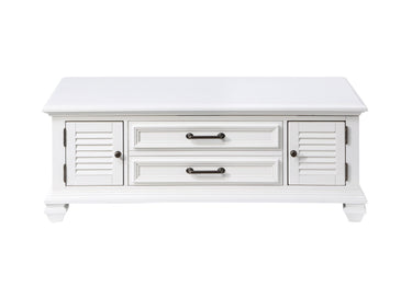 Mesa de cóctel elevable blanca con diseño rústico moderno que se integra a la perfección en estilos contemporáneos o rústicos. La mesa de cóctel elevable Charlestown es un complemento elegante para cualquier sala de estar gracias a su estética depurada y la función adicional de su tapa elevable, que permite comer o trabajar desde el sofá.