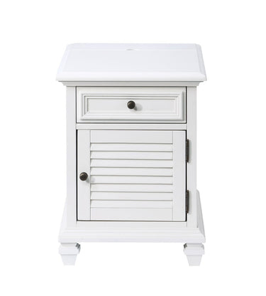Diseño rústico moderno en un diseño compacto que se adapta cómodamente a una silla o como complemento de un sofá o loveseat. Esta mesa Charlestown ofrece estética y funcionalidad, con una regleta desplegable que permite recargar dispositivos fácilmente gracias a su estación de carga USB integrada. Todo ello con un acabado blanco impecable, puertas de lamas y una base contemporánea en forma de bollo, en un diseño de transición que se adapta a cualquier habitación.