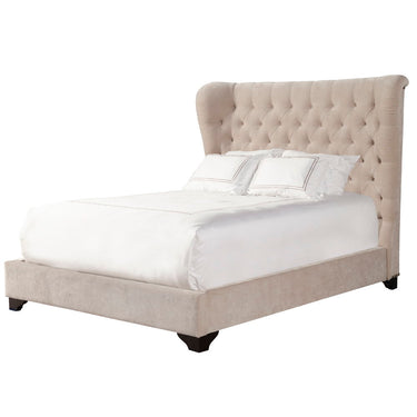 Impresionante desde cualquier ángulo, la cama tapizada Chloe será el centro de atención de cualquier dormitorio. Su silueta suavemente curvada te envuelve con estilo, mientras que su elegante capitoné con botones le aporta un carácter suntuoso. Tapizada en una exquisita tela aterciopelada, las barandillas y el pie de cama tapizados se complementan con patas de madera festoneada.