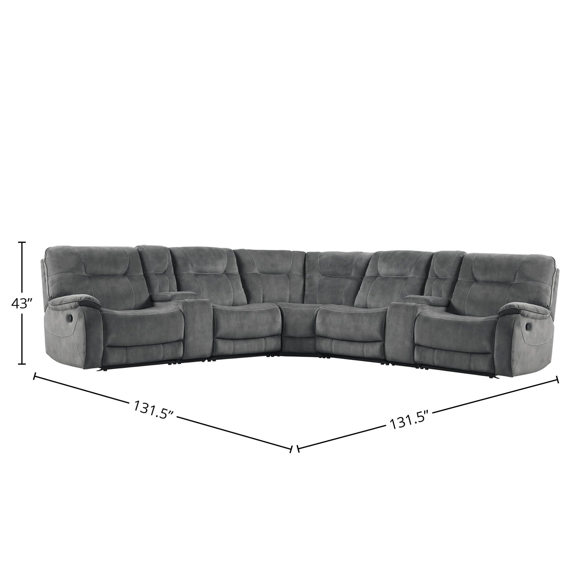 Cooper - Seccional reclinable manual modular de 6 piezas con consola de entretenimiento - Gris sombra