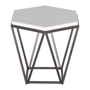 Corvus - Mesa auxiliar hexagonal con tablero de mármol - Blanco