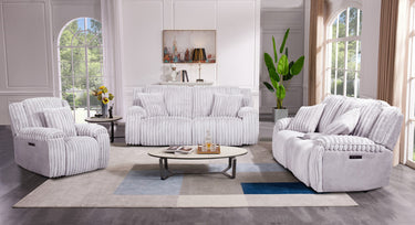 El grupo de movimiento acanalado con tacto de visón ultrasuave será el centro de atención en su sala de estar renovada. El grupo de mecanismo reclinable accionado por botones, con almacenamiento en la consola central, portavasos, puerto USB, cojines decorativos a juego y reposabrazos acolchados, ofrece lujo y comodidad en estado puro.