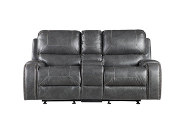 Comodidad y estilo superiores son las señas de identidad de este conjunto de muebles. Con una funda de imitación de cuero con costuras de béisbol, este conjunto incluye un sofá con consola abatible y estación de carga USB; un loveseat con dos extremos mecedores/reclinables; y un sillón mecedor/reclinable giratorio de 360 grados. Los detalles de latón antiguo con tachuelas y los brazos acolchados completan este conjunto de muebles de vanguardia.