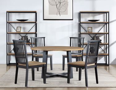 Las líneas limpias y un brillante acabado bicolor convierten a esta silla de madera maciza en un clásico instantáneo. Su respaldo de husillo con acabado de ébano combina a la perfección con un asiento de madera maciza con acabado natural, creando una sinfonía de estilo rústico moderno. Sus características de durabilidad, como las esquinas bloqueadas y atornilladas, garantizan la resistencia y durabilidad de esta silla para comedor, sala de estar u oficina.