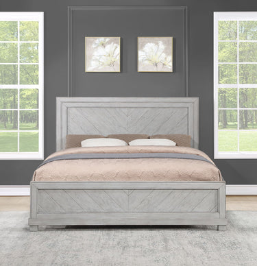 Relajada y rústica, la cama Montana aporta un estilo informal al dormitorio actual. Su acabado neutro y suave complementa la mayoría de los interiores con un diseño primitivo que ofrece una sofisticación sencilla con detalles como la cabecera y el pie de cama con marco y estampado Chevron. Ya sea en la habitación de invitados o en el dormitorio principal, Montana embellece el dormitorio sin resultar recargado.