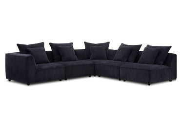 Este exquisito seccional está confeccionado con precisión y tapizado en una resistente tela 100% chenilla tejida, con un tacto aterciopelado y un estampado en relieve que le aporta un toque extra de sofisticación. Este seccional está diseñado pensando en su máxima comodidad. El cómodo cojín está revestido de algodón acanalado antiplumas para que mantenga su forma y evite la migración de las plumas. Los cojines están acolchados con dacrón de alta densidad y cubiertos con plumón y plumas esterilizadas para una máxima suavidad. El seccional está hecho para durar, con estructuras de madera con bloques de esquina reforzados para una resistencia y estabilidad duraderas. Las maderas seleccionadas se secan al horno para minimizar la deformación y las grietas, a la vez que garantizan una larga vida útil. Esta atención al detalle garantiza que su seccional se mantenga resistente y confiable. Ya sea que busque un rincón acogedor para una noche de cine o un espacio para recibir invitados, nuestro seccional modular de 5 piezas lo tiene cubierto. Con su diseño modular, puede organizar las piezas para que se adapten a su espacio y necesidades.