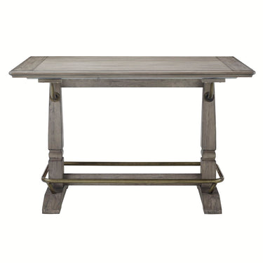 Ryan presenta un elegante y rústico juego de comedor de barra, diseñado para el estilo de vida actual. Un acabado en roble ahumado se combina con herrajes de latón envejecido y rieles de cocina para crear la sensación de una antigüedad desgastada. El juego de comedor de barra incluye taburetes informales y cómodos que combinan a la perfección con la mesa o en una zona de barra independiente. La mesa de barra no desentonaría en un antiguo salón del Oeste, sino que también luce de maravilla en los hogares modernos.