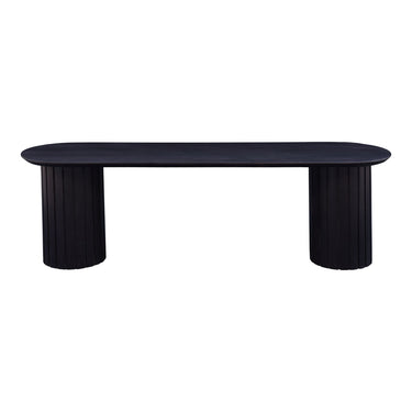 A convergence of shape and form, the Povera dining bench will serve as the pillar of your dining room. Povera features two large columns supporting an expansive tabletop, their gentle ribbing reminiscent of ripples and waves. With a rich black finish featuring a soft purple undertone that allows the natural wood grain of the Acacia wood to show through, this dining bench uses simple geometry and natural materials to form an enchanting experience. Offering bold statement appeal, Povera incorporates the elegance of ratio into your home.