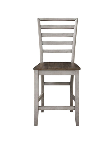The Abacus Counter Chair represents relaxed casual styling in a two-tone smoky alabaster and smoky honey finish. The ladderback design is shaped for sitting comfort and the wooden seat is shaped for comfort. The transitional style works well with farmhouse, contemporary or transitional styles and the neutral finish complements many interiors. Pair with the Abacus Counter Collection or use in a kitchen or other counter height area.