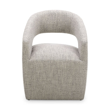 Dinner’s ready—and so is Barrow. Upholstered in easy-to-clean NeverFear™ performance fabric, this rolling dining chair brings unexpected comfort to the table. Its curved back hugs just right, while a feather- and foam-filled seat adds sink-in softness. With its cool grey tone and hidden casters, Barrow rolls effortlessly through every meal, refill, and round of conversation.