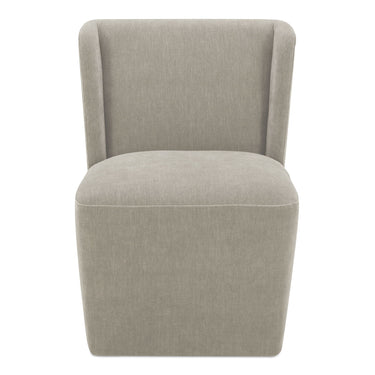 The Cormac rolling dining chair is all about comfort with a generously padded seat and backrest, a slight curve of the back and caster wheels that effortlessly glide across the floor. Crafted from high-performance fabric that is soft to the touch yet resilient against stains, spills, and daily wear.
