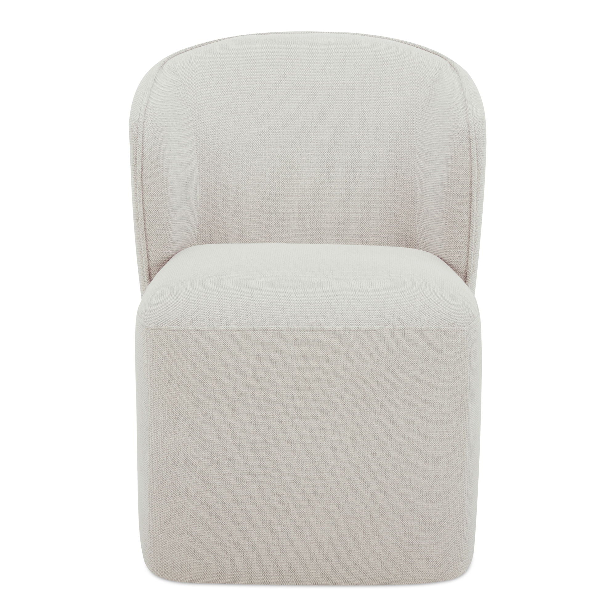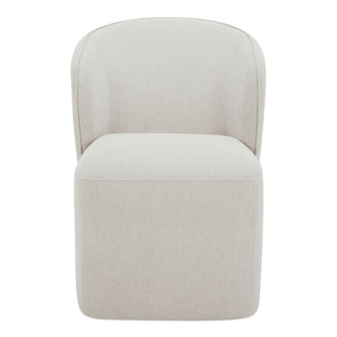 The Larson rolling dining chair is as much about comfort as it is about modern sensibility, with a generously padded seat and backrest, graceful silhouette, clean lines, curved back, rounded square seat, caster wheels and high-performance fabric upholstery that protects against stains, spills, and wear and tear.