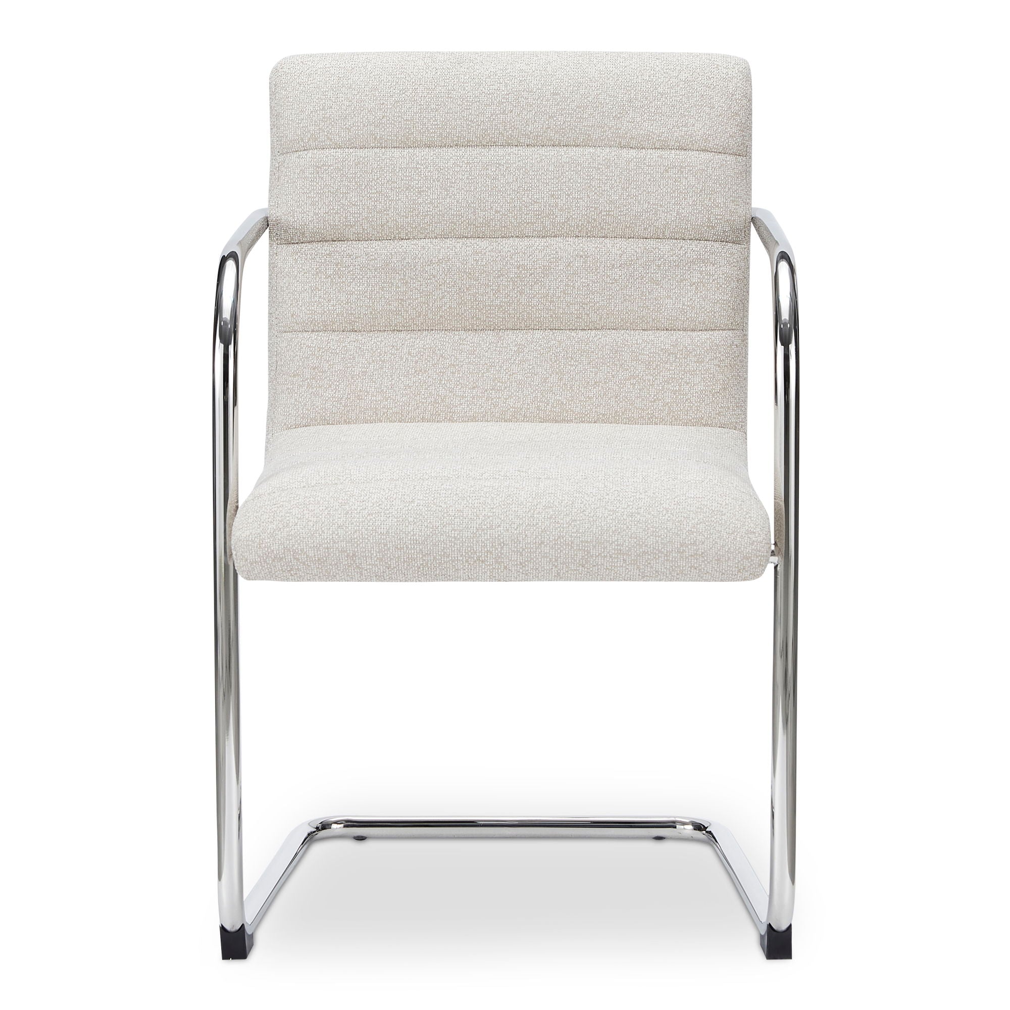 - Cantilever stainless steel frame contrasts soft, channeled upholstery