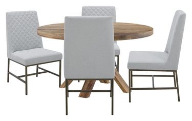 Crossings - Mesa de comedor redonda con 4 sillas tapizadas - Marrón y gris claro