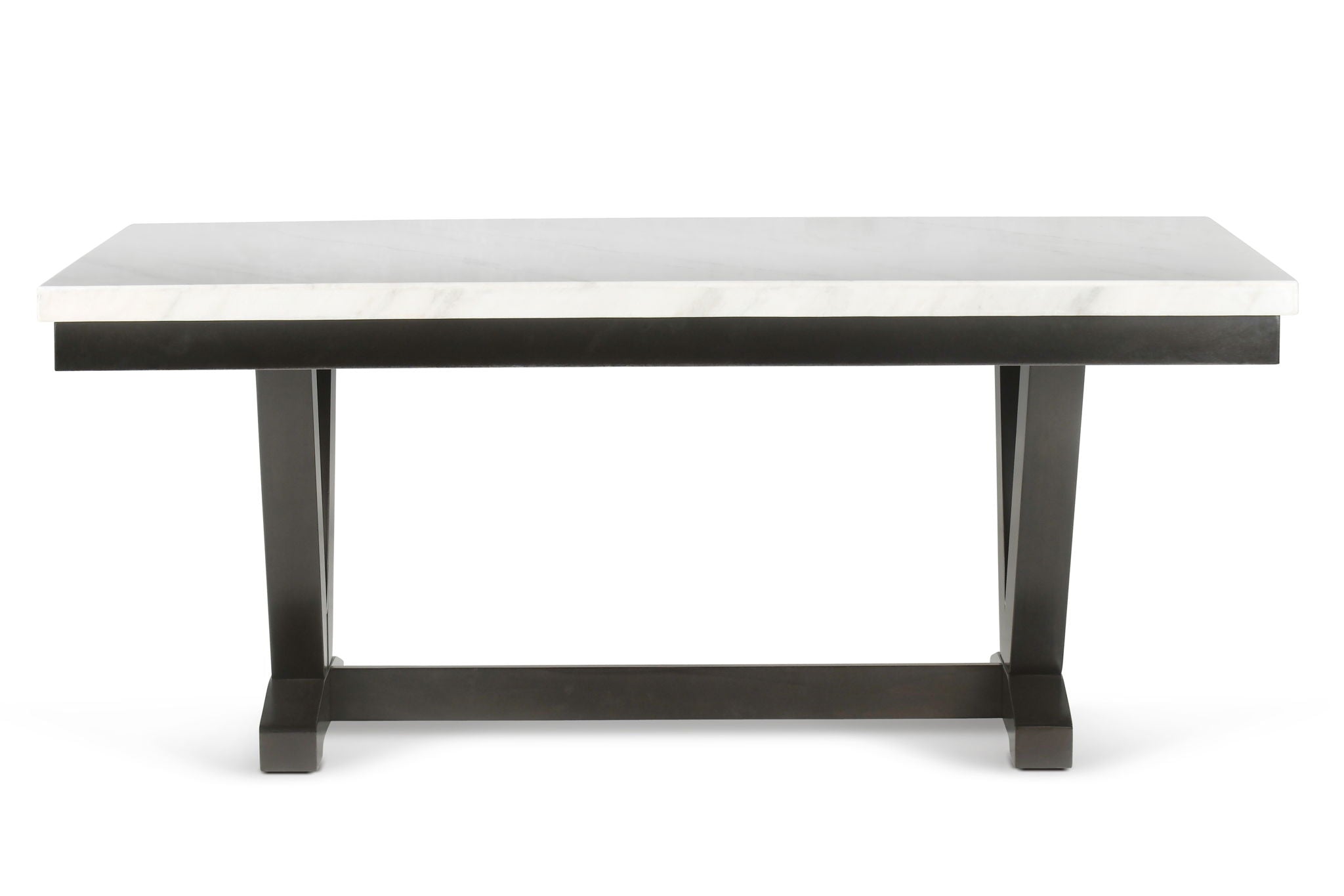 Put on the ritz with Finley dining by Steve Silver Company. The beautiful marble top table features one-piece veneer construction for a seamless look that is sure to please. The nailhead trim polyurethane chairs are easy-to-clean and add a touch of glamour to any room. This sophisticated set seats six comfortably and will be sure to impress your family and guests!