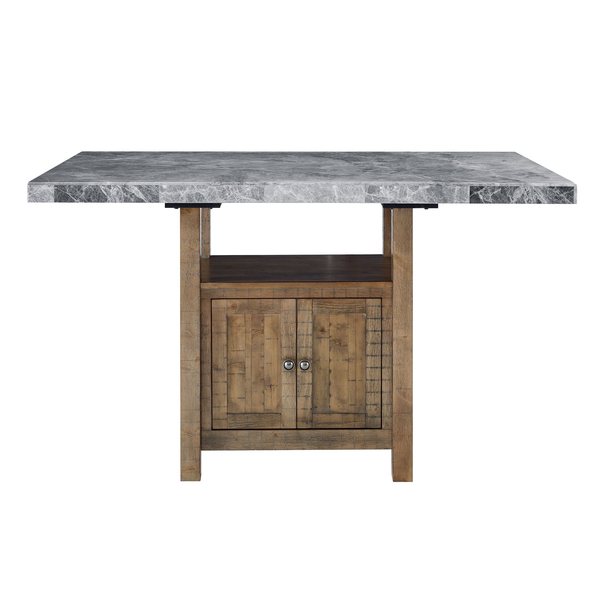 The refined rustic dining design of the Graystone Counter Dining Set elevates the look of everyday and special dining design with its combination of marble tops and distressed wood. Storage choices abound from the Storage Table base to the optional Server. The fully upholstered Counter Chair offers a comfortable seat to continue the conversation long after desert has been served. Comfortable seating for six rounds out the transitional design that relaxes and elevates any dining area.