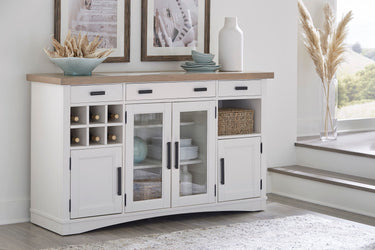 El servidor buffet de 167 cm es una pieza versátil y elegante, perfecta para sus necesidades gastronómicas y de entretenimiento. Con su fresco acabado Cotton pintado a mano y su cubierta Weathered Natural en contraste, ofrece un encanto atemporal que sin duda impresionará. Los herrajes personalizados de metal sólido con un auténtico acabado de Bronce Bruñido añaden un toque extra de elegancia al diseño. Este servidor buffet también cuenta con un centro de alimentación dual AC integrado, lo que facilita tener los electrodomésticos a mano. La iluminación táctil de tres vías ilumina sus artículos favoritos y las puertas centrales de cristal añaden sofisticación a la vez que resaltan el contenido interior. Un estante de almacenamiento extraíble es perfecto para exhibir botellas de vino, y los tres cajones de almacenamiento, con rodamientos de bolas para una apertura y cierre suaves y ensamblajes de cola de milano inglesa para mayor resistencia y durabilidad, son perfectos para guardar artículos esenciales para la cena y el entretenimiento. Este servidor buffet tiene un diseño clásico que combina con o sin opciones de aparador a juego. El auténtico inserto de cubierta de cuarzo proporciona una superficie perfecta para la preparación y el servicio de alimentos, lo que lo convierte en la opción ideal para su comedor o cocina.