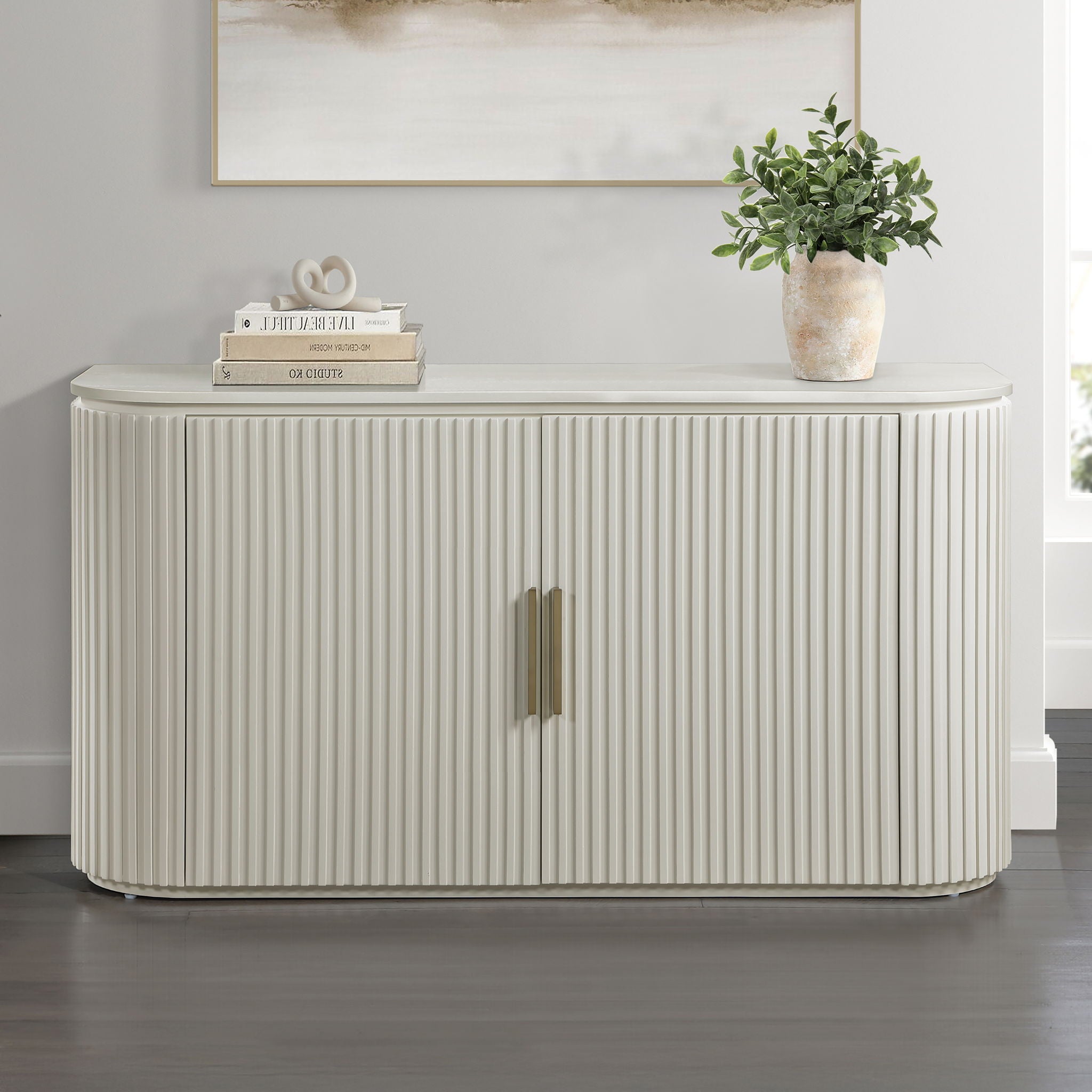 Experimente el encanto moderno del servidor Colvin con sus puertas frontales delicadamente redondeadas y estriadas que emanan elegancia. Esta pieza combina el glamour del Hollywood clásico con un amplio espacio de almacenamiento y bisagras europeas ocultas para una estética impecable. Dos estantes ajustables en el interior ofrecen practicidad, mientras que los detalles de herrajes de latón satinado añaden un toque de sofisticación. Deléitese con su encanto romántico mientras oculta con facilidad los utensilios esenciales para el comedor.