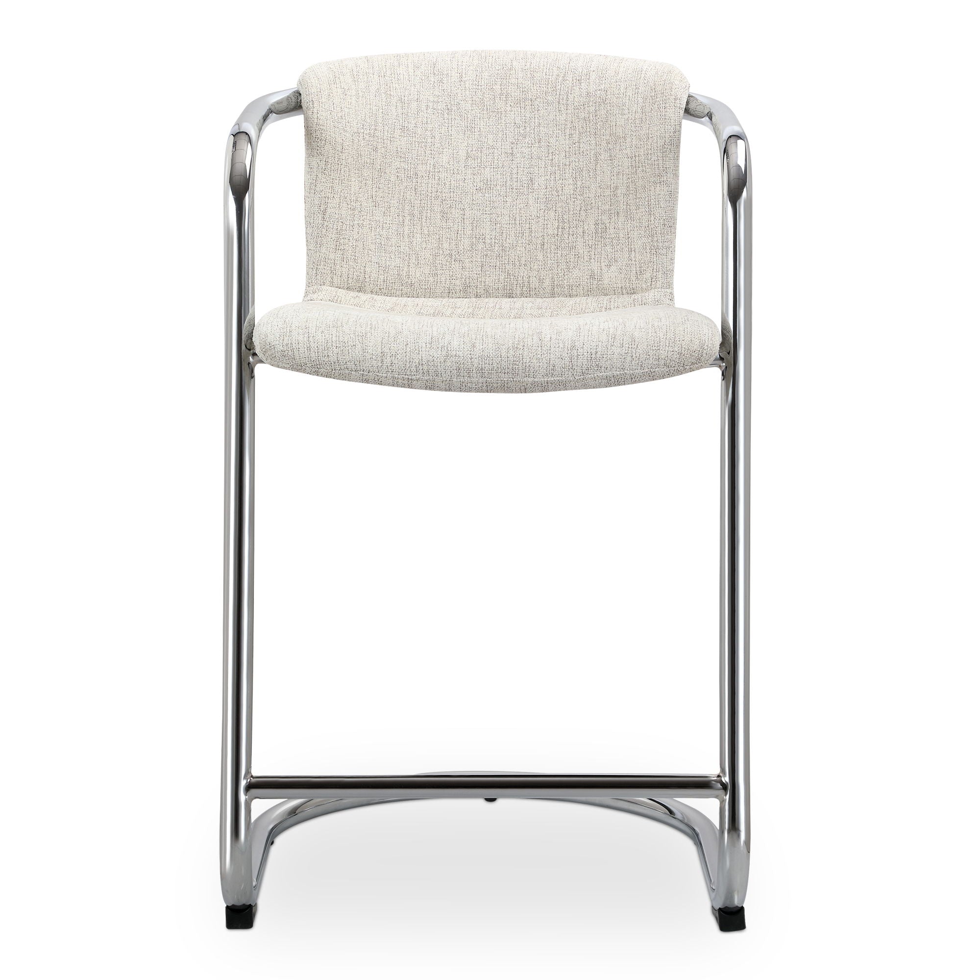 The Freeman chrome counter stool is a look through the lens of taste—a testament to confidence, warmth and passion. Its modern industrial aesthetic unites the luxurious sophistication of easy-to-clean fabric upholstery with sleek industrial chrome iron framing for a look that is both refreshed and retro.