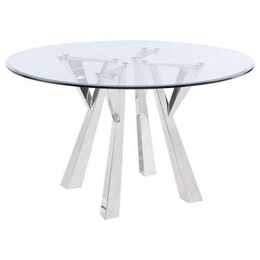 Alaia - Mesa de comedor redonda con tapa de cristal transparente - Cromada