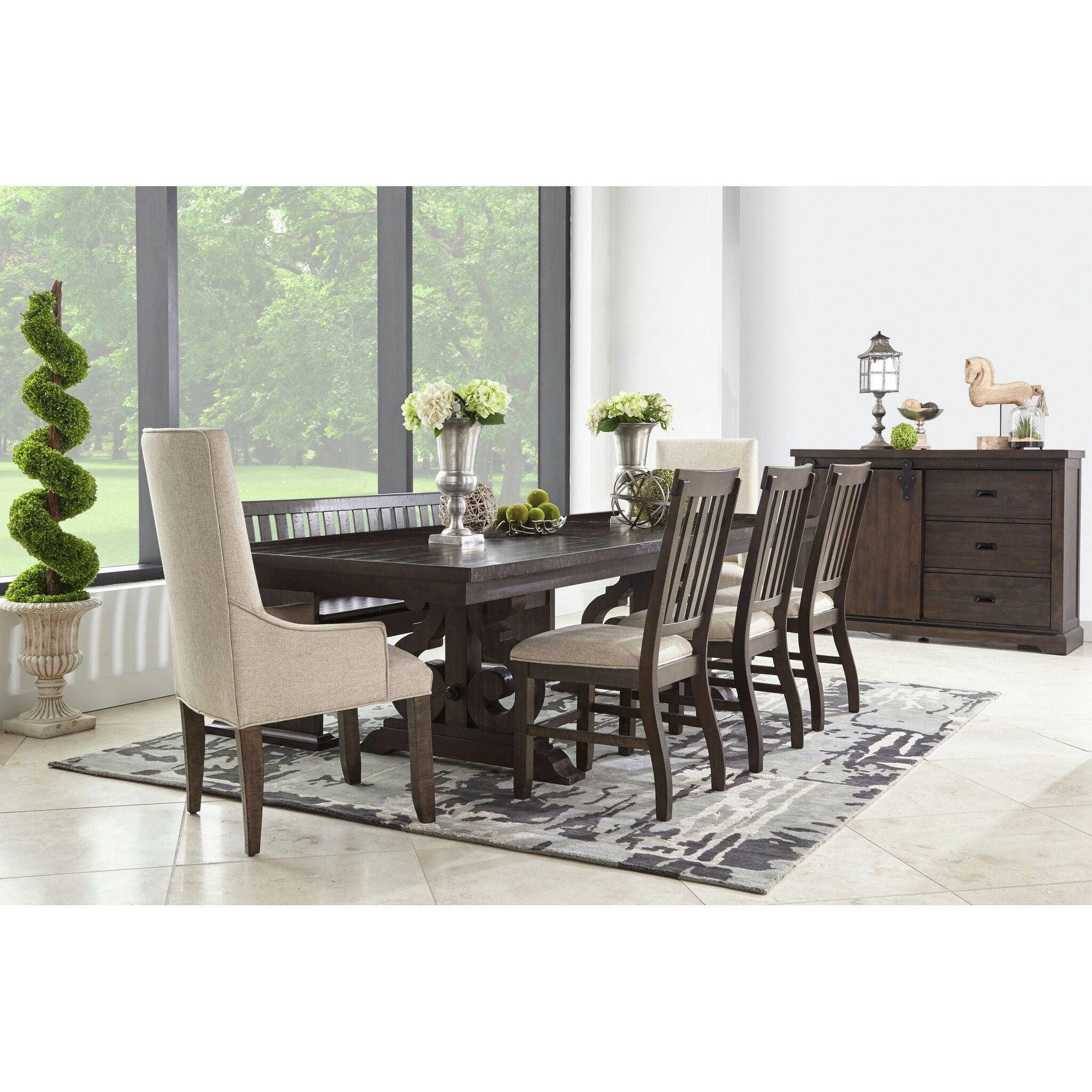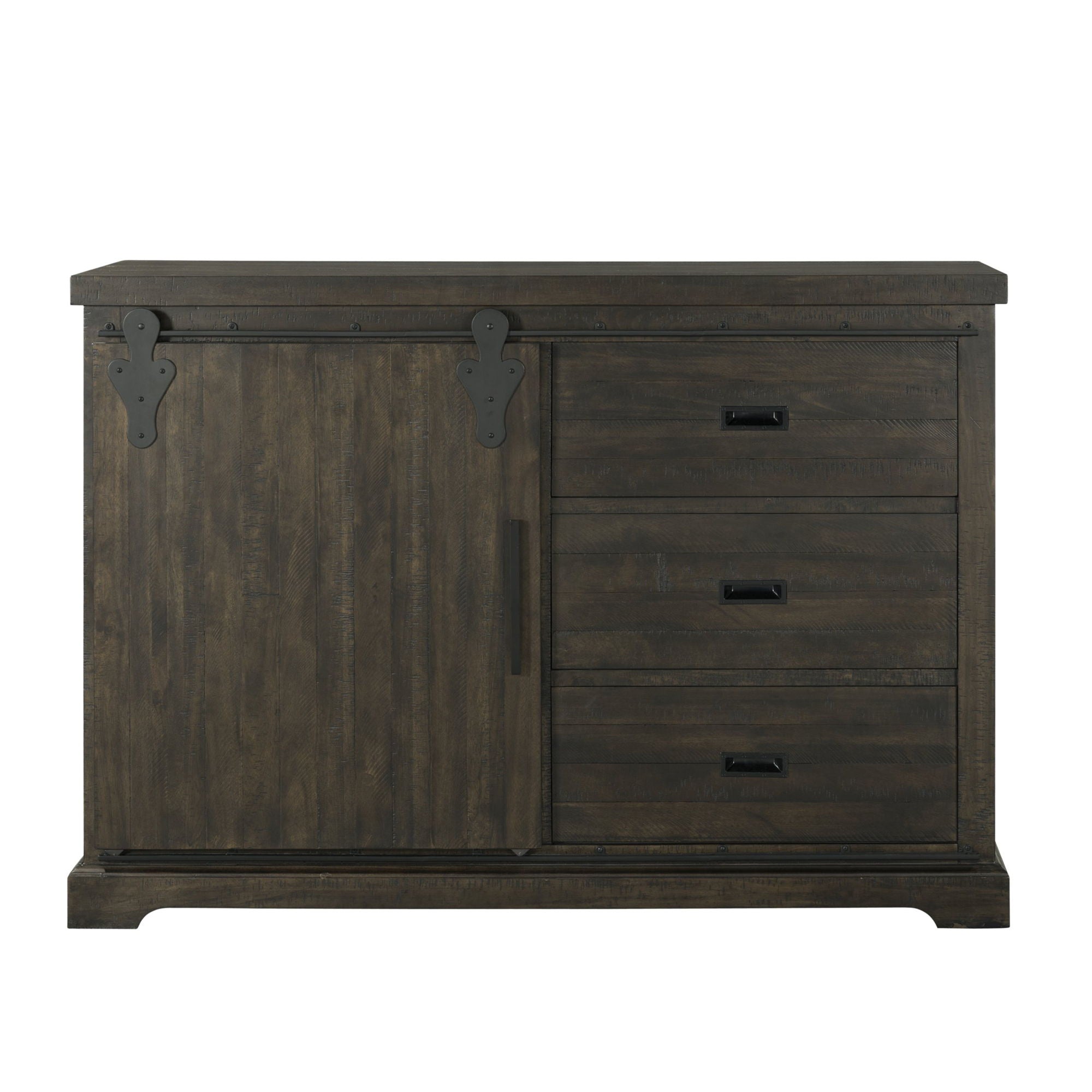 The Stone Server brings refined style and warm design to your dining area. Constructed of wood solids and veneers with a smoky finish, this piece offers three spacious drawers and a trendy sliding door. Decorative dark finished hardware completes the look of this handsome server.
