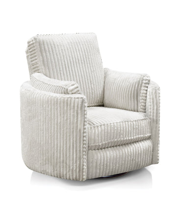 Go ahead and kick your feet up and relax in the Corey swivel recliner! From it's round shape to its plush back and pillow arm, you will be wrapped in comfort from head to toe.