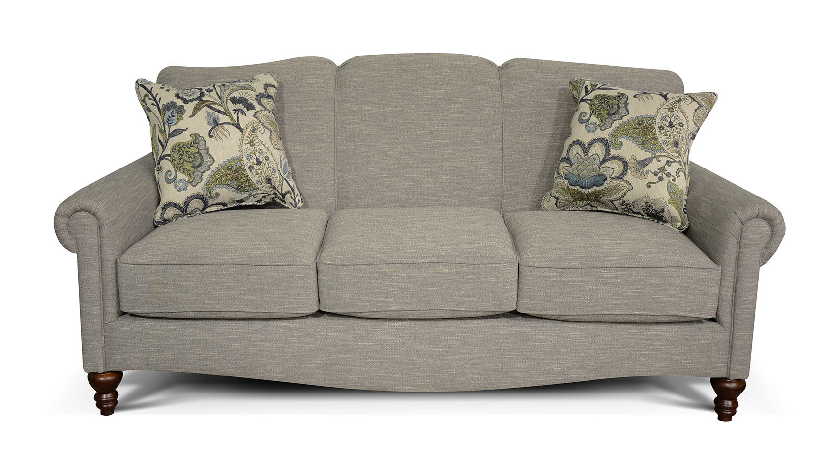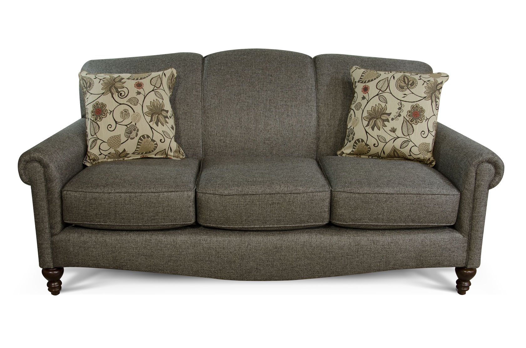 If you are looking for a petite sofa with loads of charm, then Eliza might be just what you're looking for. Its rolled panel arm, camel back, and curved front rail, give it a ton of style! We offer a matching loveseat, chair, rocking chair, and ottoman.