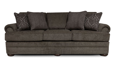 Our Knox collection is anything but ordinary, with its transitional styling it stands out in any room. This series has a roll arm, bun foot, T-cushion, and optional antique brass nailhead trim on the arms and base. Available as a sofa, loveseat, chair, and ottoman.