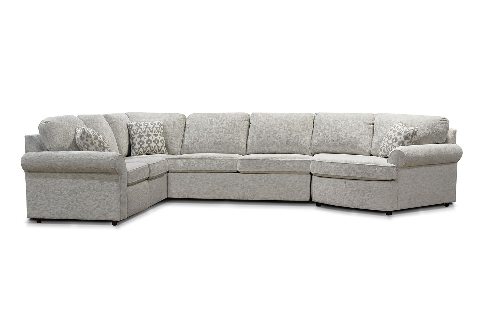 Our Malibu group can be anything you want it to be. The versatility of style is endless with its stylish rolled arm, self welted cushions, and simple clean lines. Choose from over 400 fabric options to make it truly yours. Available as a sofa, loveseat, chair, ottoman, sleeper, storage ottoman, and sectional with and without power motion capability.