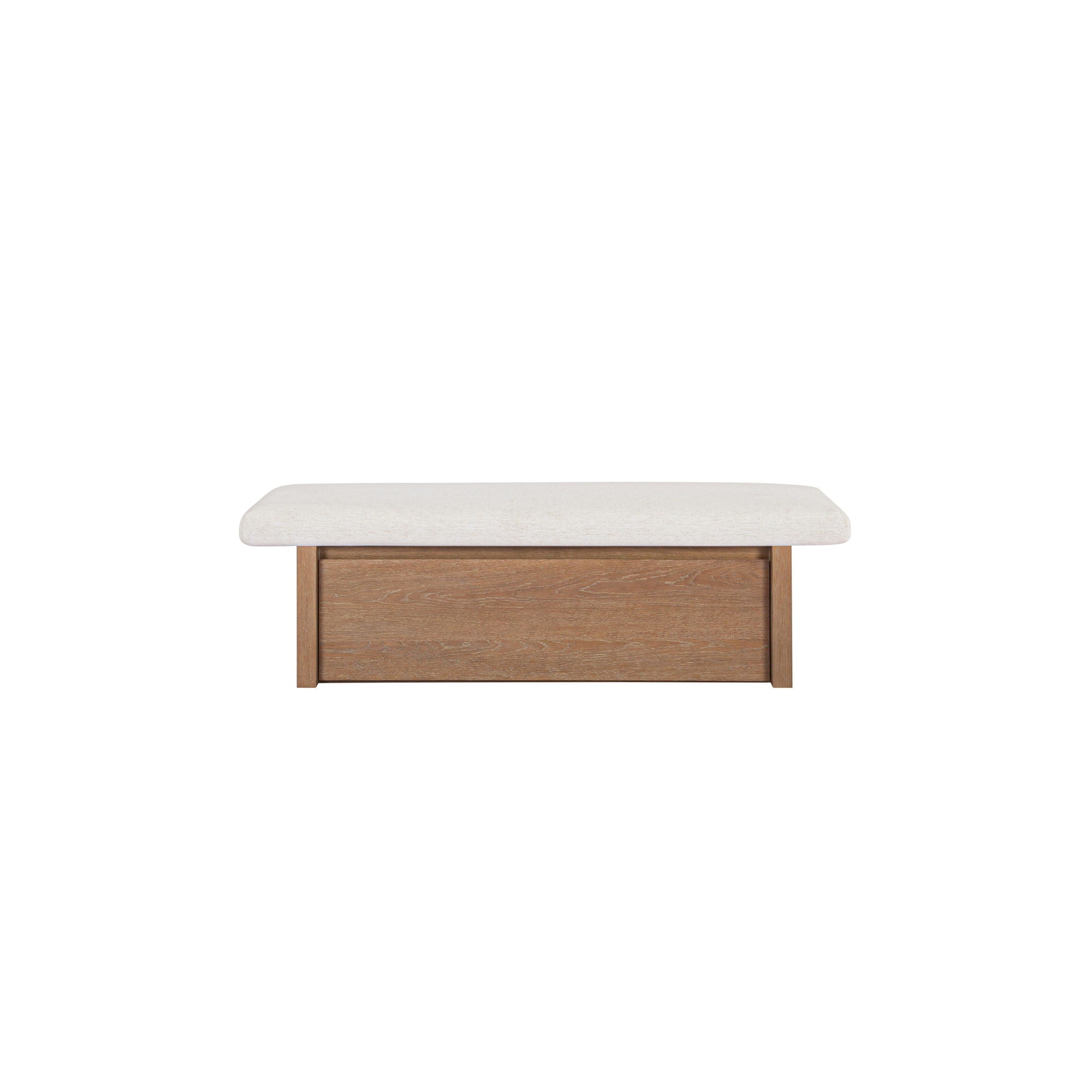 The Gemma storage bench marries contemporary elegance with versatile, functional design. Its generous, deep-seated top is wrapped in a soft, muted chenille, that effortlessly transitions the bench from entryway statement to sophisticated coffee table or seating at the foot of a bed. The recessed wooden base invites functional repose as a sleek wire-brushed drawer offers ample storage.