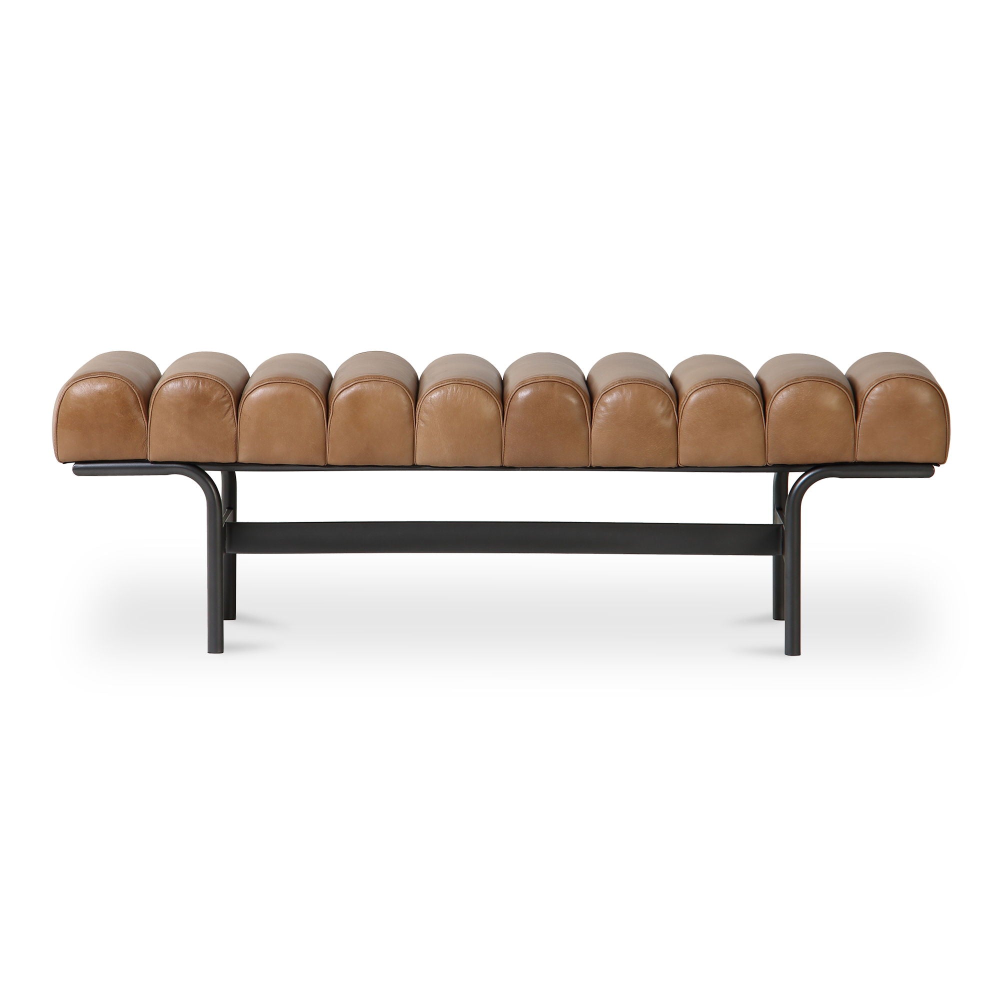 With its channel detailing that adds a touch of softness to the robust metal frame, the distinguished Harrison bench embodies clean lines and a modern sensibility. Crafted with exceptional attention to detail, it effortlessly blends into any space, making a statement wherever it resides, be it the entryway, living room or bedroom. A showcase of luxurious top-grain buffalo leather upholstery, it seamlessly adapts to any decor scheme and adds a touch of sophistication to the surrounding environment.