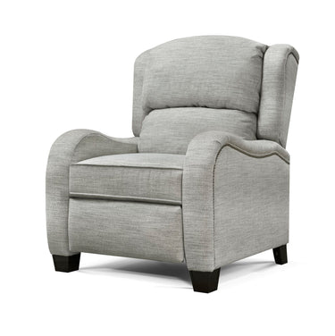 Create an atmosphere of casual ambiance with the Carolynne reclining chair. Its slightly rugged charm works well with any decor. This shapely silhouette sports a brass nail trim, pub back, and wooden block leg. Make sure you check out Leonard if you're interested in seeing it in all leather.