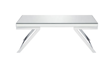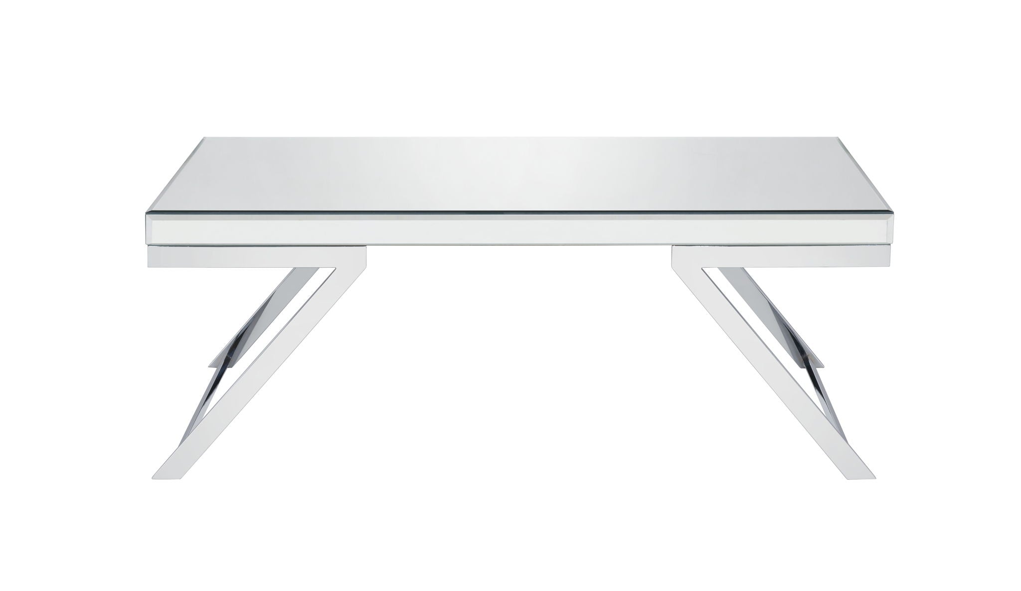 Modern glam styling in a Coffee Table that will instantly add sparkle to any room. The Alfresco Coffee Table features a glistening, canted chrome base and a reflective bevel mirrored top that is just the right size for most living areas. The mirrored table opens up a room with its light and airy design that almost disappears but for the occasional sparkle or reflection. Part of the Alfresco collection, pair with the Alfresco End Table for an instant living room classic.