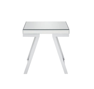 A great Side Table that is just a reflection of its surroundings, the Alfresco End Table adds sparkle and glam to a room with its mirrored top and canted chrome base. Great as an End Table or wonderful as a glam Nightstand in the Bedroom, Alfresco opens up any area by naturally reflecting its surroundings.