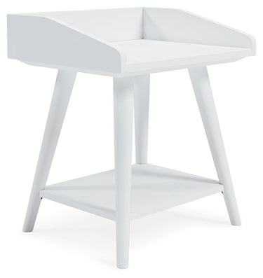 Muestra tu decoración con un estilo sencillo en esta mesa auxiliar. Fabricada en madera y madera contrachapada con un acabado blanco impecable, esta mesa combina a la perfección con la estética de tu sala de estar o puede usarse como mesita de noche infantil. Su riel superior, estante bajo encimera y dos cargadores USB hacen que tu vida (y tu estilo) sean simplemente sensacionales.