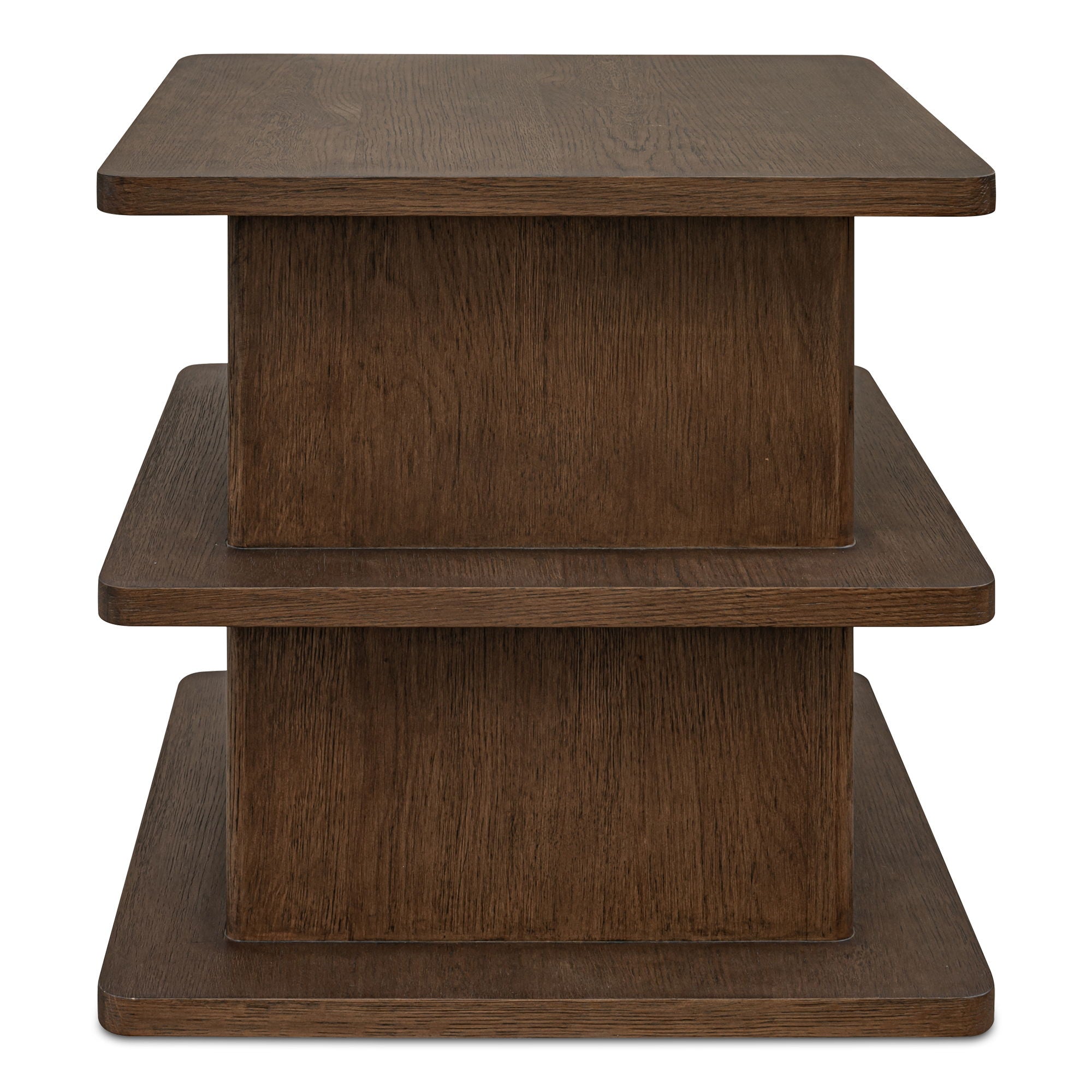Architectural elegance meets functional versatility in the Casey side table. Its rounded edge tabletop and shelves, and bullnose-edged vertical support create a soft, inviting silhouette. Versatile and beautifully proportioned, the Casey adapts effortlessly to various settings, offering ample storage and timeless appeal also as a nightstand.