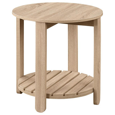 Fowler - Mesa auxiliar redonda de madera de ingeniería con 1 estante - Natural
