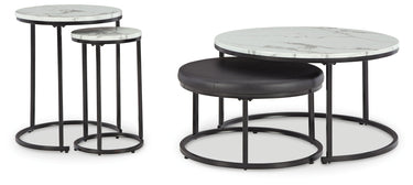 Eleva el nivel de estilo y funcionalidad contemporáneos con este versátil juego de mesas nido. Sus tableros de imitación mármol de Carrara se combinan con estructuras metálicas tubulares de acabado oscuro para lograr un look elegante y llamativo. La tapicería de piel sintética negra le da un toque moderno a la otomana, que se guarda fácilmente debajo de la mesa de centro. Este juego nido aporta un toque de estilo a espacios pequeños.