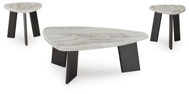 Instantly create a casually cool vibe with this occasional table set. You'll love the striking contrast between its chic faux marble top and bold black legs. The unique guitar-pick shape is not only stylish and contemporary, but also makes the most of your small-space living area. These versatile tables act as a sleek display space or the perfect spot for morning coffee or cocktails to land—or both.