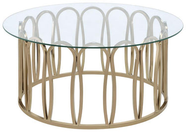 Esta mesa redonda cuenta con un tablero de vidrio templado transparente sobre una resistente estructura metálica. La base tiene un llamativo acabado en cromo chocolate galvanizado, que le confiere un tono latón más intenso y profundo. Con su elegante diseño, esta mesa de centro es el complemento ideal para cualquier sala de estar o salón, ofreciendo elegancia y estabilidad. La estructura metálica le da un toque moderno, mientras que el tablero de vidrio templado garantiza una larga duración y un fácil mantenimiento.