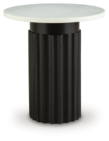 A la moda y totalmente cautivadora, esta mesa auxiliar demuestra que el estilo se puede dar en pequeños detalles. Su cuidada visión del diseño de interiores se refleja en el contraste de mármol blanco y metal negro. Los detalles acanalados de la base le dan un toque contemporáneo. Ya sea junto a una silla o como pieza decorativa, esta mesa es absolutamente genial.
