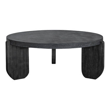 Ancient inspiration meets design innovation. Strikingly dark, the Wunder coffee table takes a monolithic statement into a low-profile silhouette to keep your space strong. A round concrete tabletop is perfectly matched by the organic texture and sturdy support of solid acacia legs, the bold design offset by soft rounded edges. Wonderfully versatile, this coffee table wouldn't look out of place in a modern apartment or the hanging gardens of Babylon. Consider it mid-Mesopotamian modern- or feel free to consider it the bold new centerpiece for your living space.